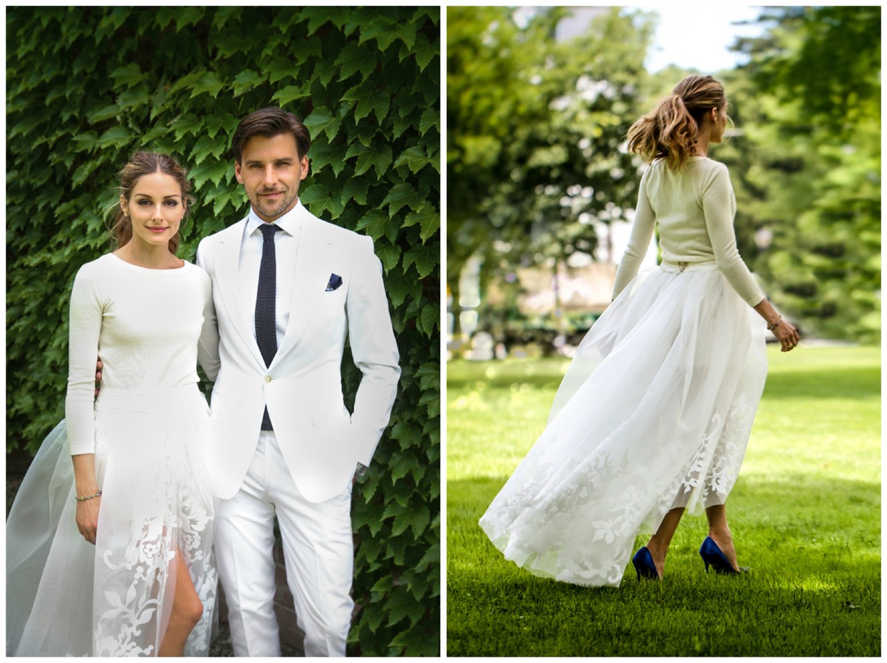 Normalmente quando penso em casamento penso em vestidos extravagantes. Mas no caso da Olivia, apesar de não ser nada extravagante achei muito o estilo dela, e faz-me lembrar imenso a Carrie Bradshaw. O noivo, penso que nunca tinha visto um noivo vestido de branco, ele sendo o primeiro que vejo achei bastante charmoso! Foi uma cerimónia privada, à qual Olivia conseguiu evitar os paparazzis.